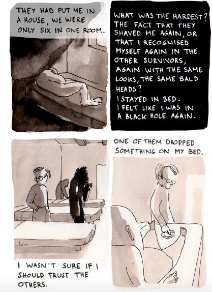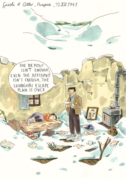 After WW2 had come to an end, numerous camps for displaced persons sprang up all over Italy. Many of them served as “roads”: one towards the South for Jews who chose to go to Palestine, another towards the ports of the Mediterranean for those who went to America or Australia. Emilie’s comic begins at the Brenner, which most refugees had to cross, and moves on to South Tyrol, which had a complex connection with displaced persons. It tells the story of how emigration roads in Italy were organised on a political as well as practical level. Set in a DP camp, it depicts Jewish, Ukrainian and Baltic refugees trying to move on, set on different destinations, following informal roads of displacement.